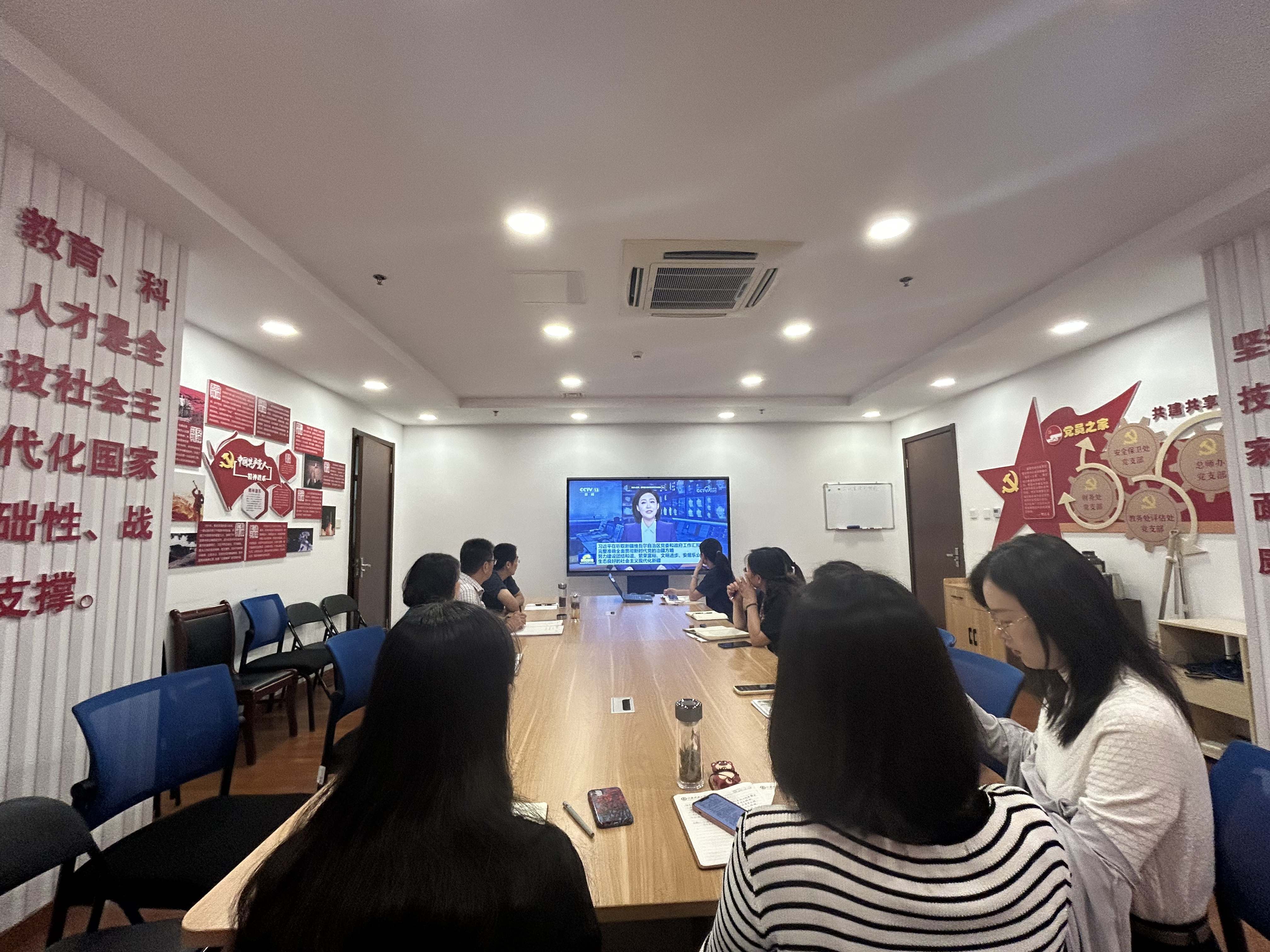 徐颖同志领学习近平总书记在听取新疆维吾尔自治区党委和政府工作汇报时的重要讲话精神。大家集体观看新闻视频并开展交流,一致表示要全面加强建设基层党组织,持续巩固拓展中央八项规定精神学习教育成果,营造风清气正的政治生态。